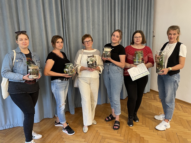 Ostatnie miesiące były bardzo kreatywne dla uczestniczek zajęć w Eko-pracowni. Dzięki pozyskanym funduszom w Kamieniu mogła odbyć się seria warsztatów w nurcie eko. Zwieńczeniem było przygotowanie lasu w słoiku pod okiem sępoleńskiej florystki Moniki Lamparskiej.