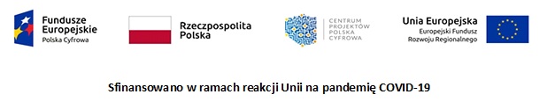 Zadanie realizowane jest w 100% z projektu grantowego „Cyfrowa Gmina o nr POPC.05.01.00-00-0001/21-00 w ramach Programu Operacyjnego Polska Cyfrowa na lata 2014-2020, osi priorytetowej V Rozwój cyfrowy JST oraz wzmocnienie cyfrowej odporności na zagrożenia REACT-EU, działania 5.1. Rozwój cyfrowy JST oraz wzmocnienie cyfrowej odporności na zagrożenia.